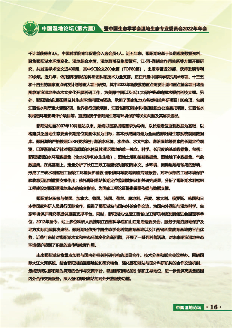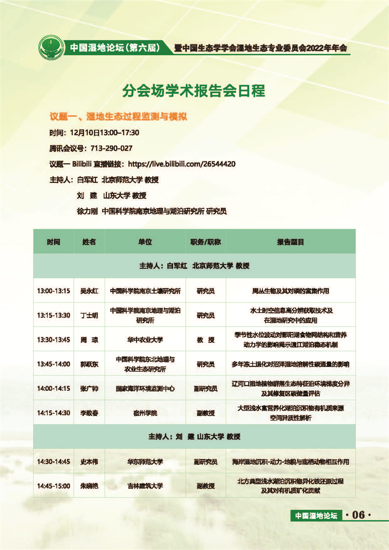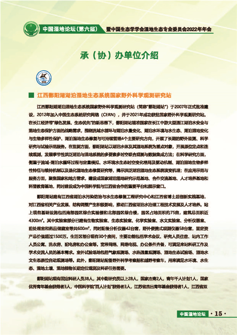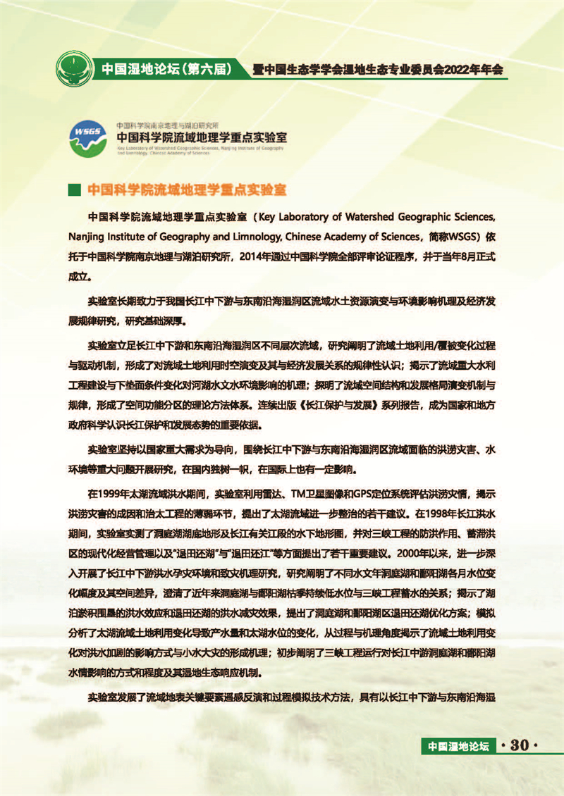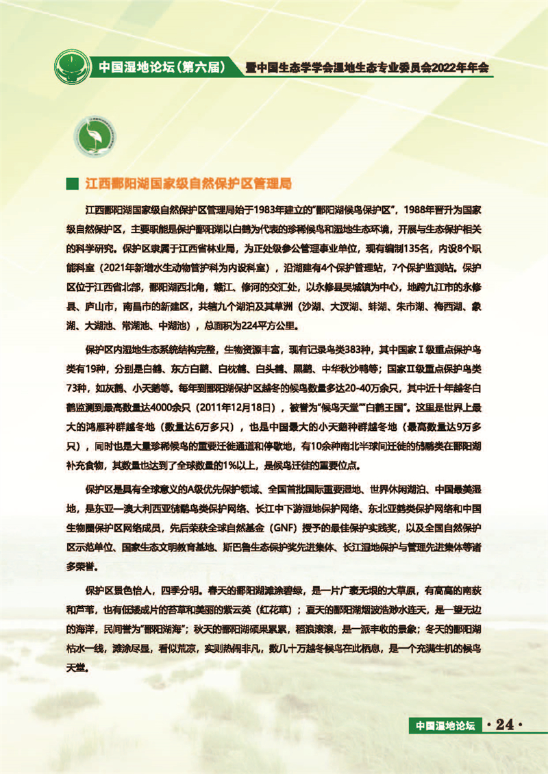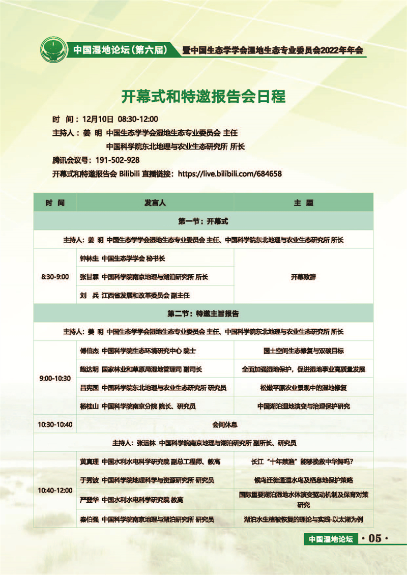 中國濕地論壇(第六屆)暨中國生態學學會濕地生態專業委員會2022年年會 會議手冊