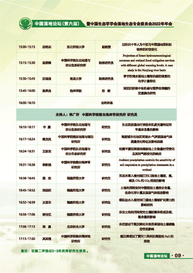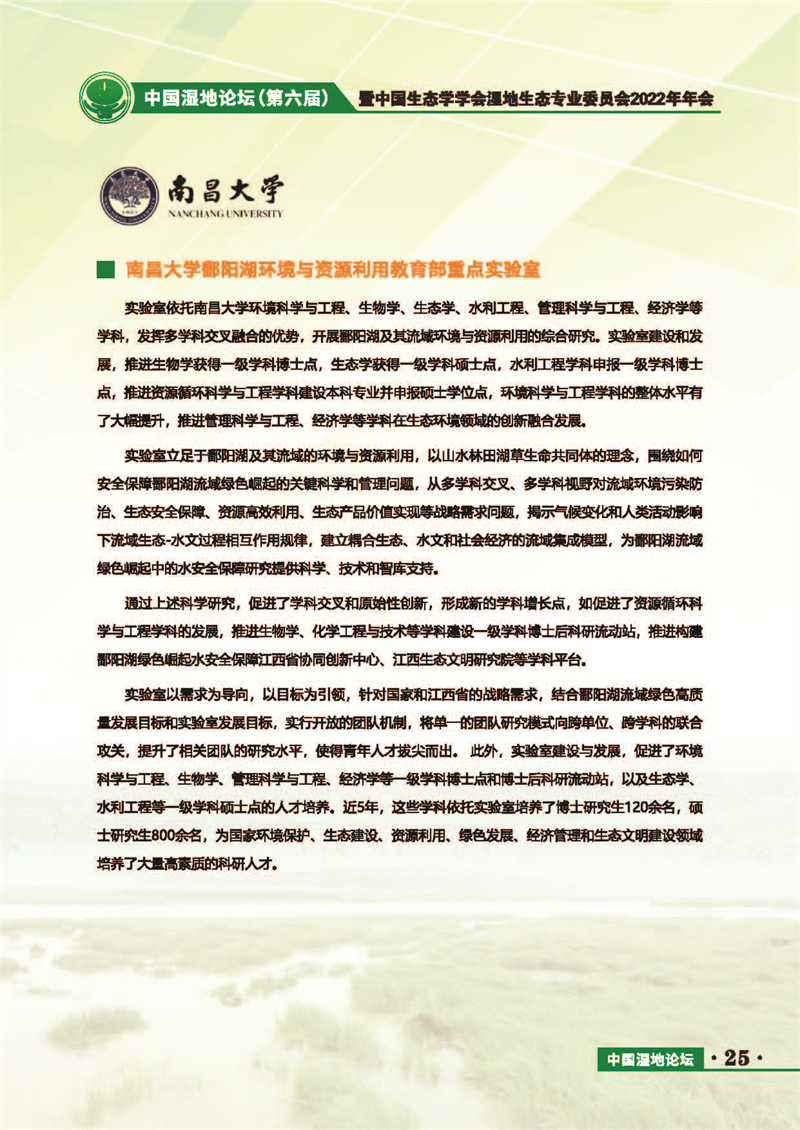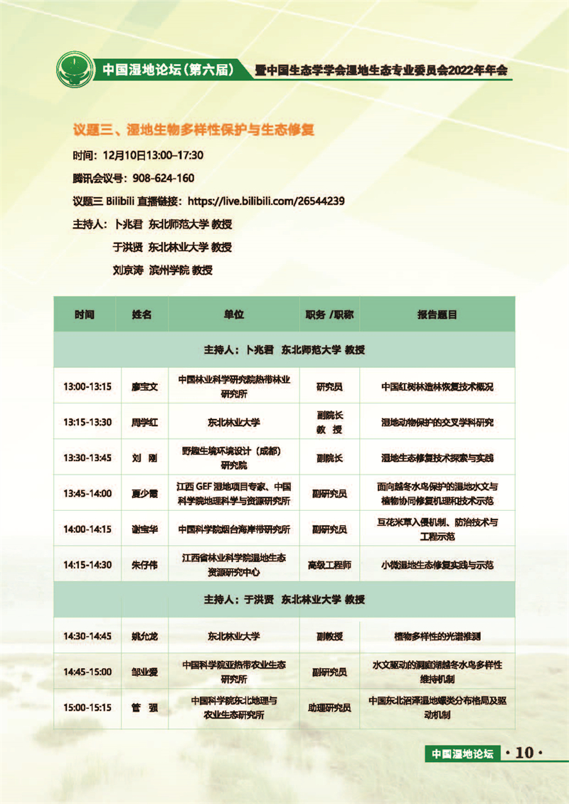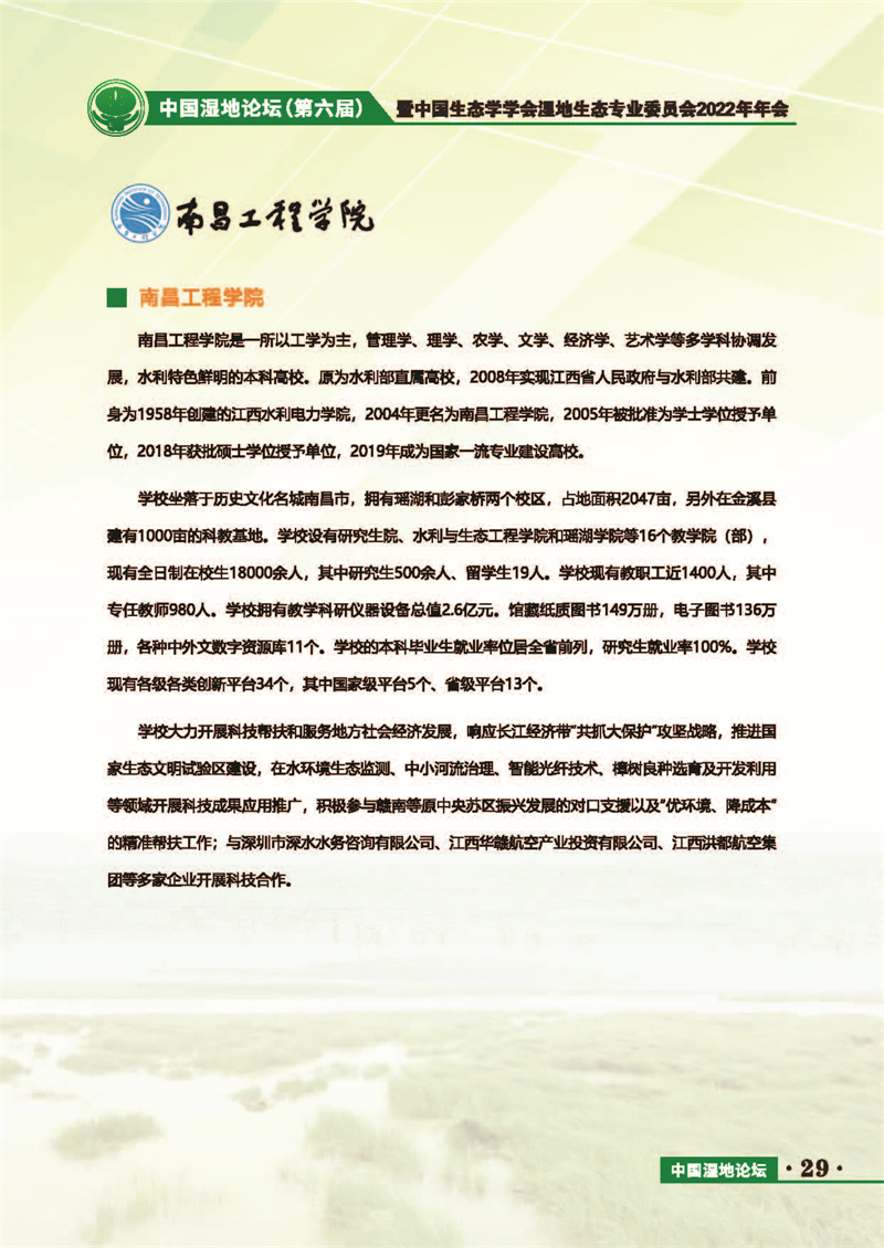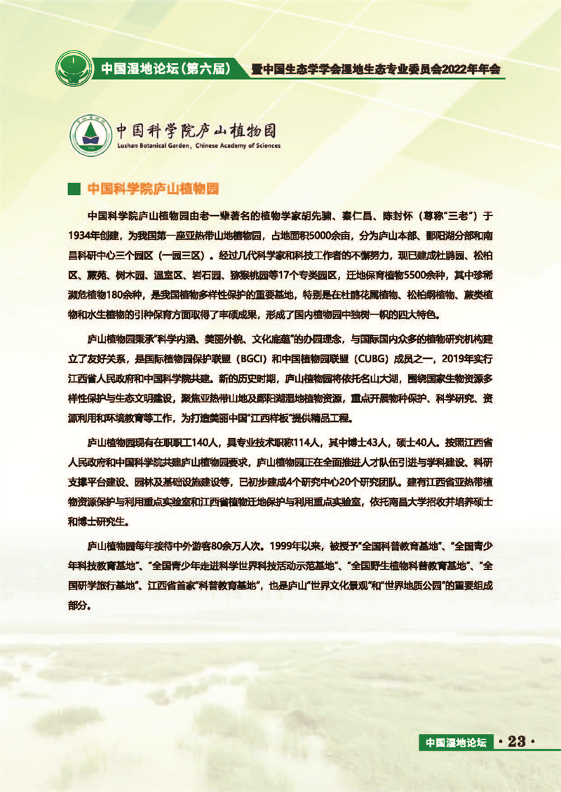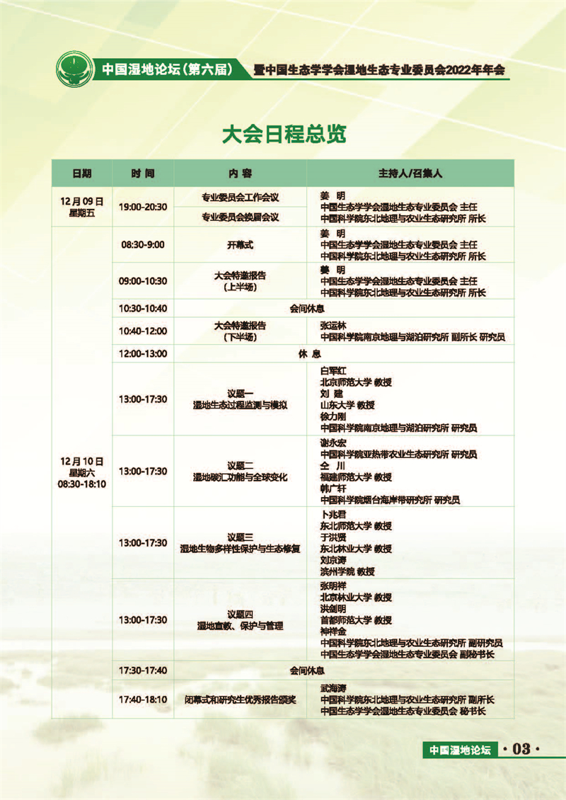 中國濕地論壇(第六屆)暨中國生態學學會濕地生態專業委員會2022年年會 會議手冊