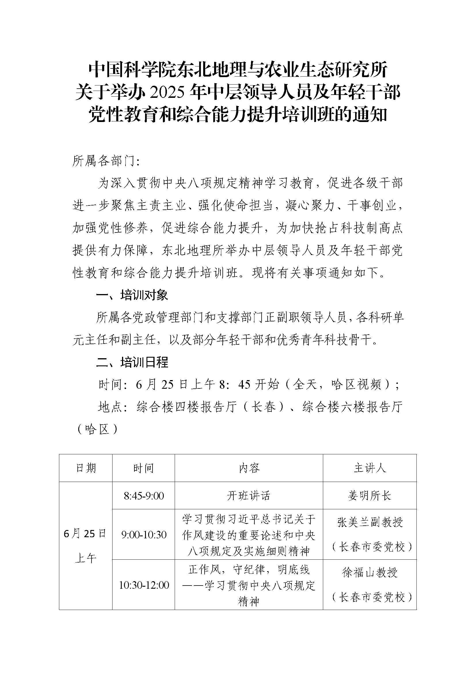 中國科學院東北地理與農業(yè)生態(tài)研究所關于舉辦2025年中層領導人員及年輕干部黨性教育和綜合能力提升培訓班的通知