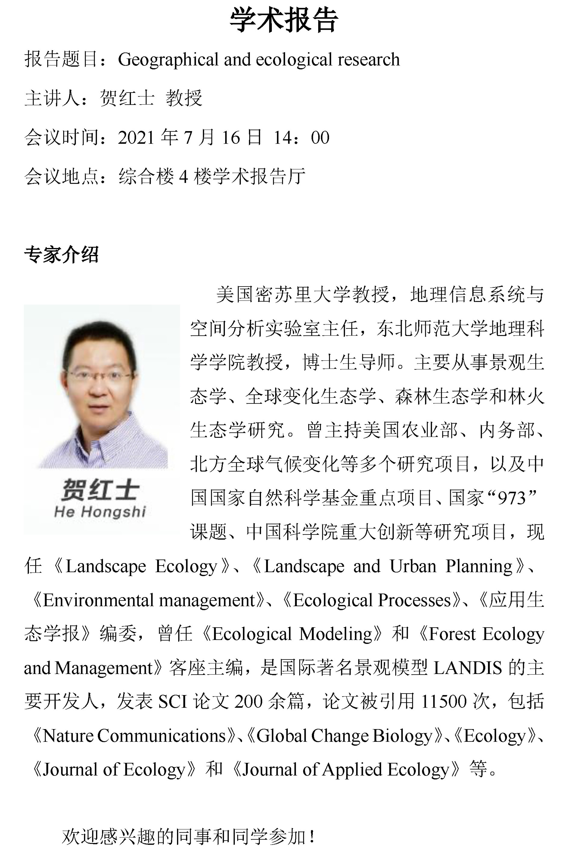 Geographical and ecological research-賀紅士 教授